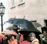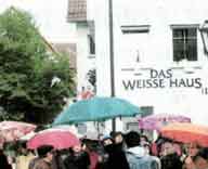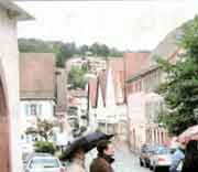 künstlich, im Gegensatz zu alten Häusern, die Ecken und Kanten hätten, aber auch schon mal etwas schief und unregelmäßig seien. „Ein Haus darf in Würde altern", stellte Sautter dazu fest. Wenn die Neu bebauung, verbunden mit Abriss alter Substanz unge-bremst weitergehe, ver-schwinden seiner Über-zeugung nach innerhalb von 40 Jahren die ortsprägenden Denkmale. Immer mehr weichen Gärten und die typischen bäuerlichen En-sembles aus dem Stadtbild. Dies war im Bereich des Judentores deutlich zu er-kennen. Lob von Sautter gab es für kleinräumige Neubebau-ungen, die jedoch nicht historisierend sein dürfe. Problematisch seien die baulichen Gutachten: So sei einem solchen beinahe die Villa Schnaufer zum Opfer gefallen. Ebenfalls „gerettet" wurde die ehemalige Sozial-station, deren Abriss die Stadt zunächst beantragt hatte. Selbst vom Abriss bedrohte typische alte Scheunen könnten einem neuen Verwendungszweck zugeführt werden, etwa als Garagen. Als „städtebaulichen Super-GAU" bezeichnete Heribert Sautter den Viehmarktplatz. „Die Gebäude sind für die Altstadt viel zu hoch", urteilte er. Dass beim Bau eine staufische Stadtmauer abgetragen wurde, mache die Sache noch schlimmer. „Wir dürfen das Vorhandene nicht leichtfertig aufs Spiel setzen, sonst bleiben später nur noch Straßennamen", lautete Sautters Fazit. Im Anschluss wurden einige mit viel Enthusiasmus sanierte ehemalige „Abrisshäuser" besichtigt, die eine gelungene Mischung aus historischem Anspruch und Wohn-Nutzbarkeit darstellen, so etwa in der Kirchgasse 1. |