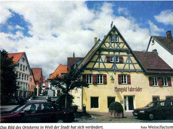 normalen Neubau vergleichbar", so Feulner. Beraten würden auch die Mitarbeiter der Denkmalpflege im Regierungspräsidium gern - wenn sich der Weil der Städter Gemeinderat für einen Gesamtanlagenschutz entschiede. Da die einzelnen Häuser des Ortes kunsthistorisch weniger bedeutsam sind, würde nur ein Schutz des Ensembles helfen, das jetzige Gesicht der Altstadt zu wahren. Bisher wurden im Land von den Denkmalpflegern 120 Städte als gesamtanlagenwürdig eingestuft, 60 sind bereits geschützt. „Die Entscheidung liegt bei der Stadt, wir können nichts vorschreiben", betonte Martin Hahn. Allerdings, so der Landesdenkmalpfleger, könne Weil der Stadt aus dieser Liste schnell herausfallen. „Wenn immer mehr neue Bauten in die Altstadt gesetzt werden, dann ist nichts mehr als Ensemble schützenswert." „Weil der Stadt ist für seine Fasnet und Altstadt bekannt", sagt Stadtsprecher Bernd Aupperle. „Jetzt steht der Stadtentwicklungsplan an, wir müssen uns überlegen, wie wichtig uns die Identität unserer Stadt ist." |